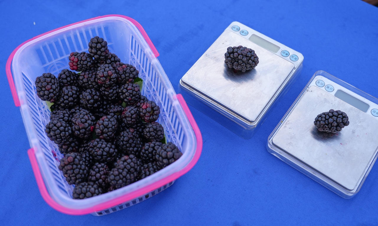 炎炎夏日,热浪席卷!寻找黑莓果王燃动开启,在黑莓小镇采摘园里,各位选手正如火如荼的采摘属于今天的黑莓果王!现场颗颗鲜果精准计量,18.7克!黑莓果王,荣耀诞生!
