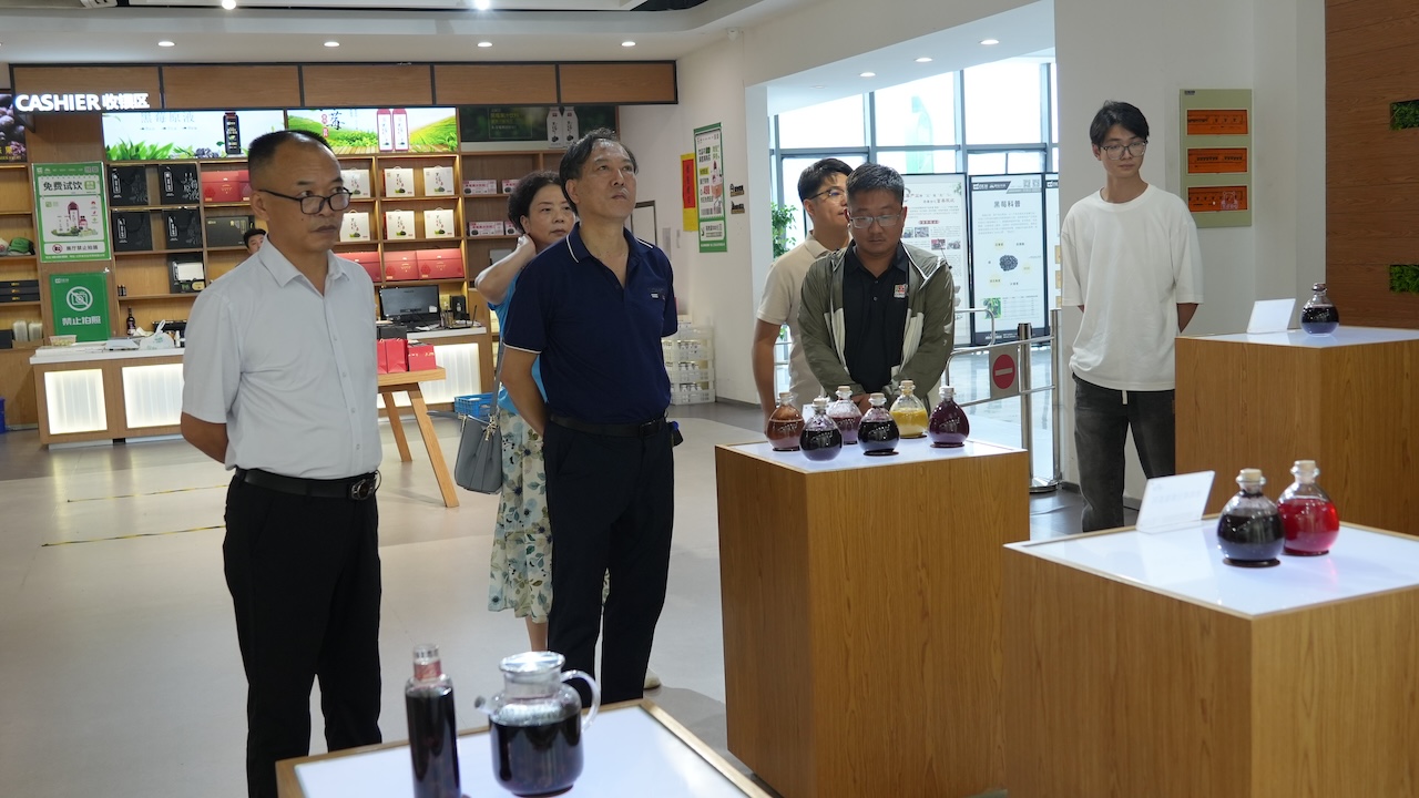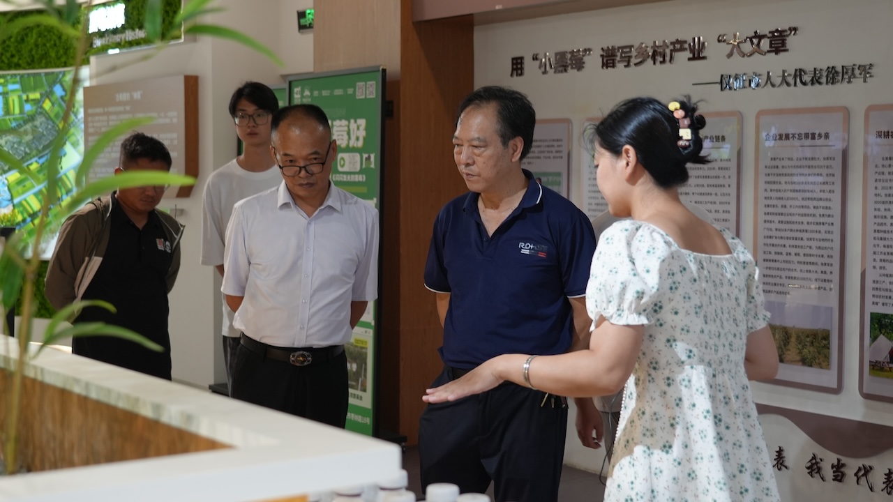 一行人实地参观了黑莓种植基地,黑莓小镇露营地以及黑莓展厅。在种植基地,基地总经理张盼飞为大家详细介绍了黑莓的种植技术、病虫害防治等方法,双方围绕现代农业技术推广、新型职业农民培育及产业融合发展展开了深入交流。随后在黑莓展厅,工作人员热情的为大家介绍百汇园在精深加工产品开发及农旅融合发展等方面的情况。